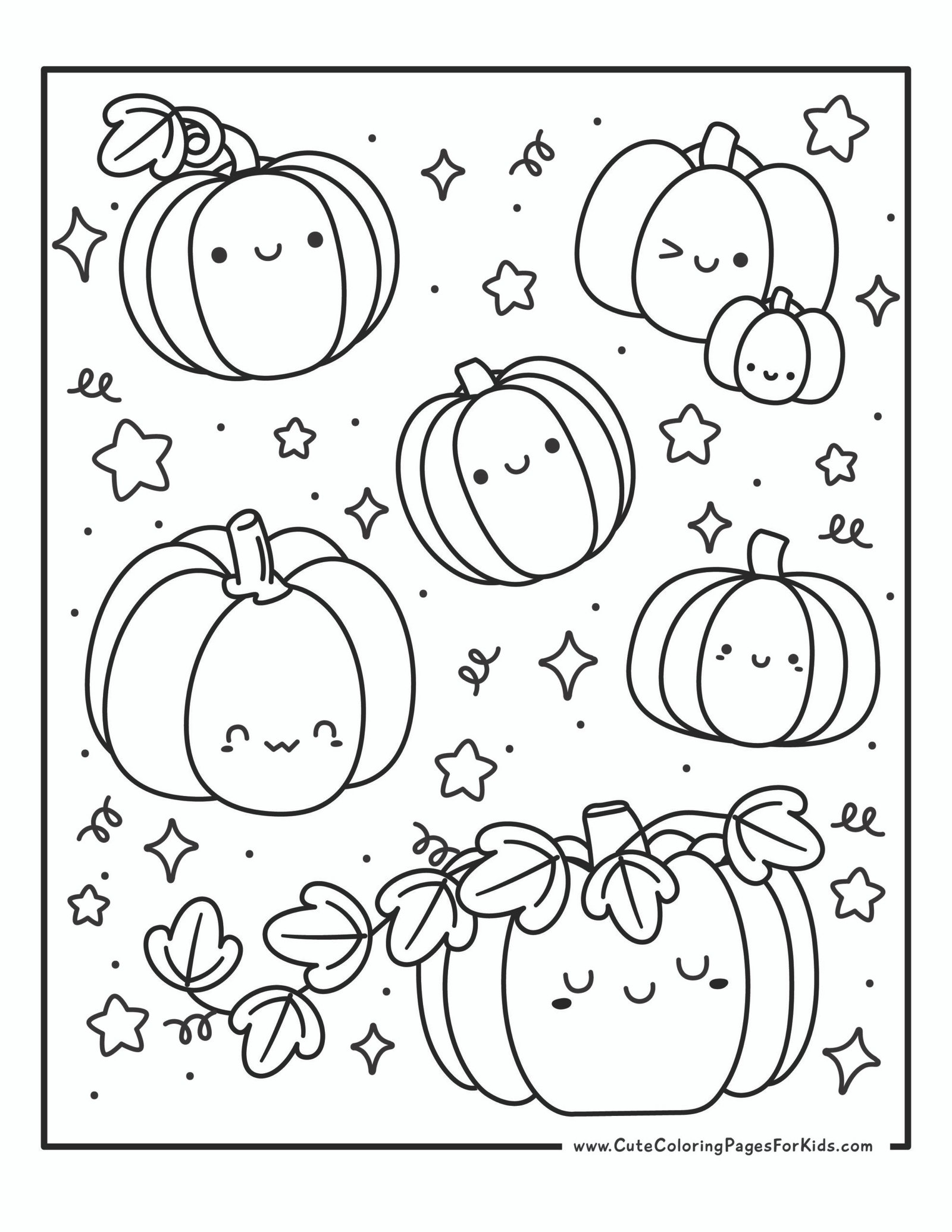 Fall free cute, cute pumpkin coloring page. Kids will love cute pumpkin themed illustrations with simple pumpkins, cute pumpkin animals and of course some pumpkin spices!